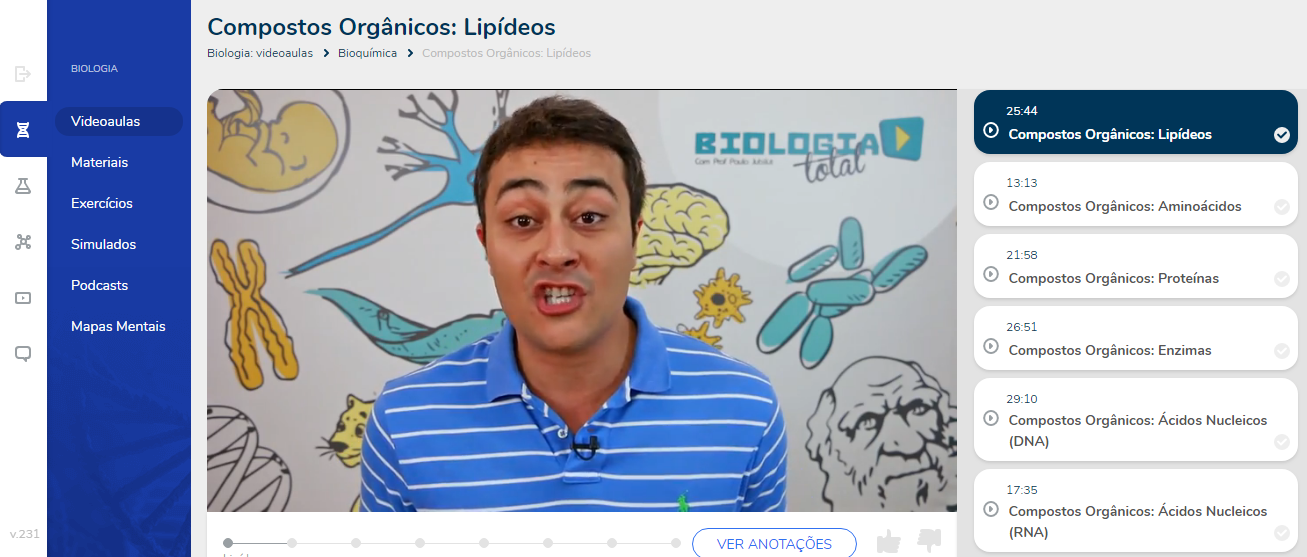 Eu amo o Biologia Total!! ótima didática e plataforma de fácil acesso. Além de contar com muitas listas de exercícios e com até vídeos de resolução, também conta com material didático muito bom!!