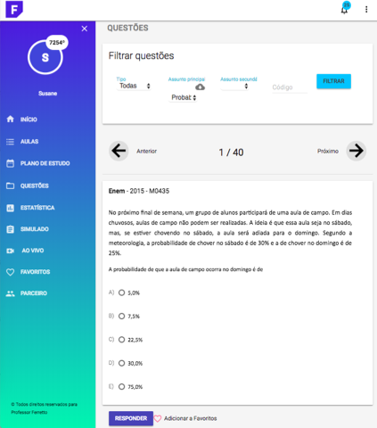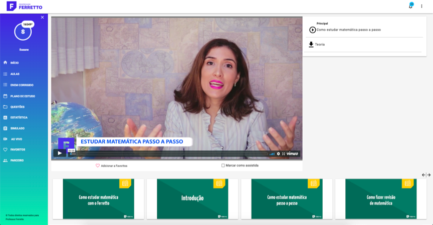 Excelente plataforma! As aulas são muito bem planejadas, com um roteiro bem legal, muitas questões, o suporte é incrível! A plataforma é bem organizada e fácil de usar. Sem o Ferretto nunca teria conseguido passar no vestibular! O preço é muito bom. Recomendo muito!