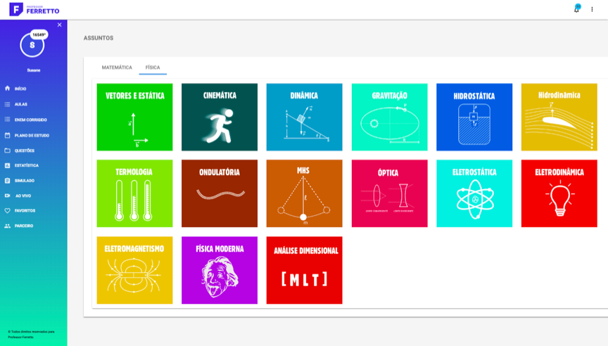 Os alunos que têm bastante defasagem em matemática e física vão se beneficiar incrivelmente da plataforma do Ferreto, visto que tanto o prof. Ferreto quanto o prof. Coelho (de física) são muito didáticos. Eles explicam com uma tranquilidade que acabam deixando a gente menos ansiosos e desesperados. A área de matemática têm muitas questões, já a de física está em expansão por ser mais recente. Se o aluno já tem uma boa base nessas disciplinas, poderá achar o curso monótono ou sem emoção. Mas, para aqueles que querem iniciar pelo básico, com certeza amarão a plataforma.