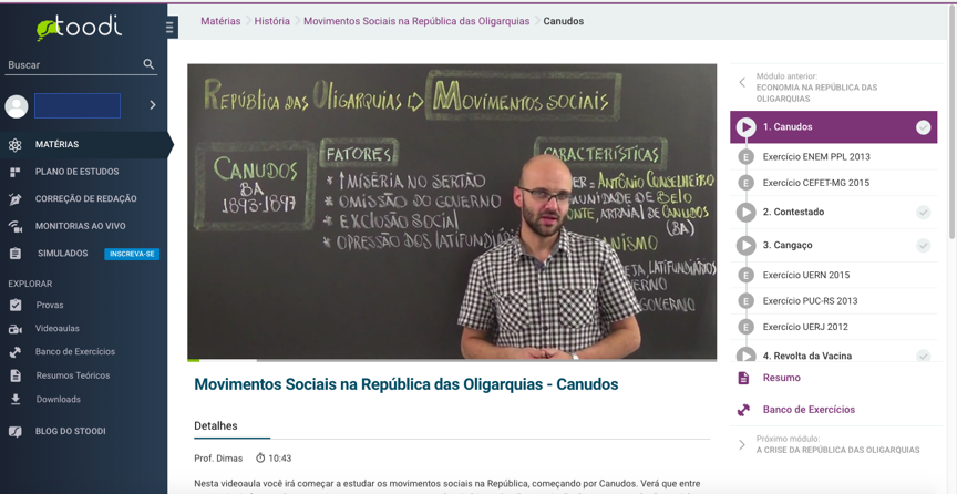 O Stoodi é um curso online completo para quem pretende fazer vestibulares tradicionais e/ou ENEM. É uma boa opção para quem não quer ou pode investir em plataformas de disciplinas específicas, pois o curso é sequencial e bastante didático em todas as disciplinas exigidas nos vestibulares.